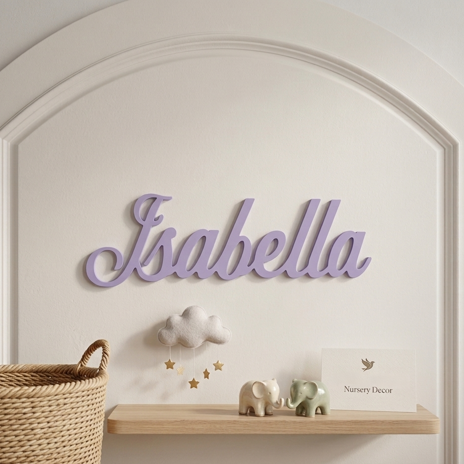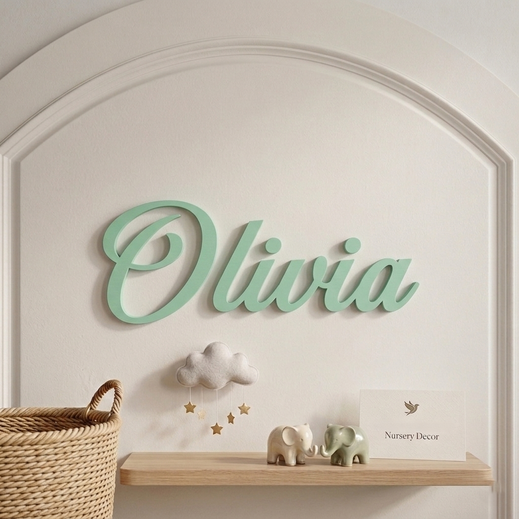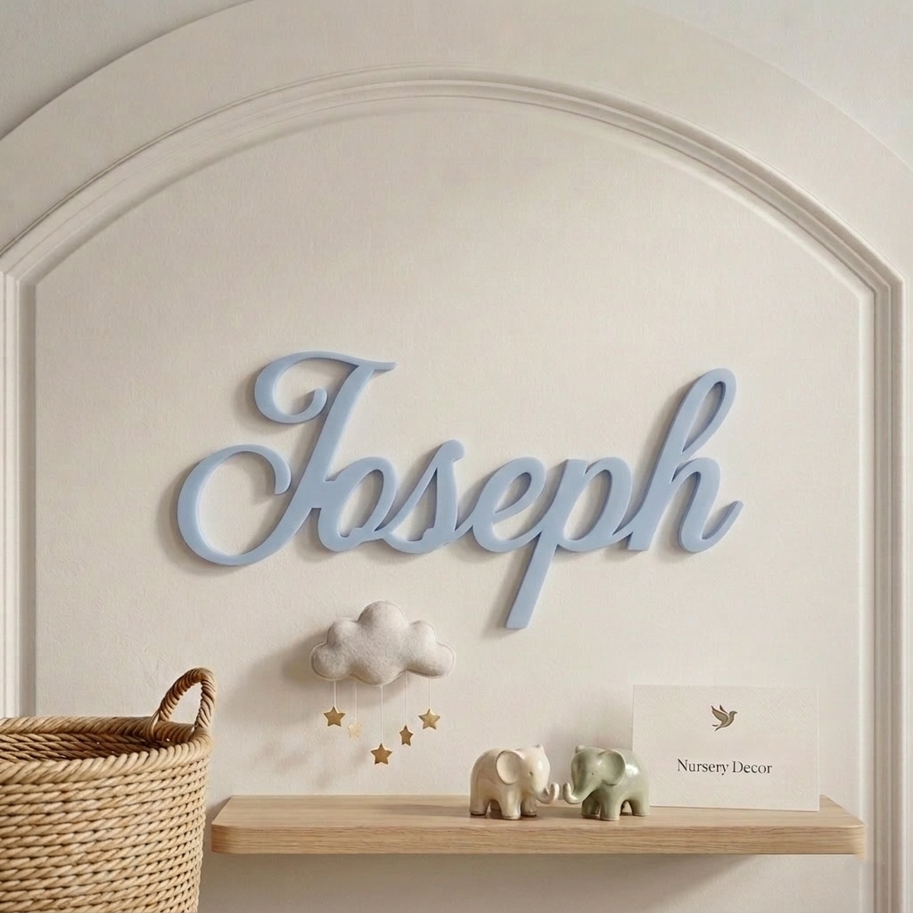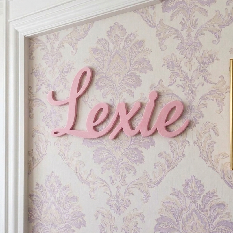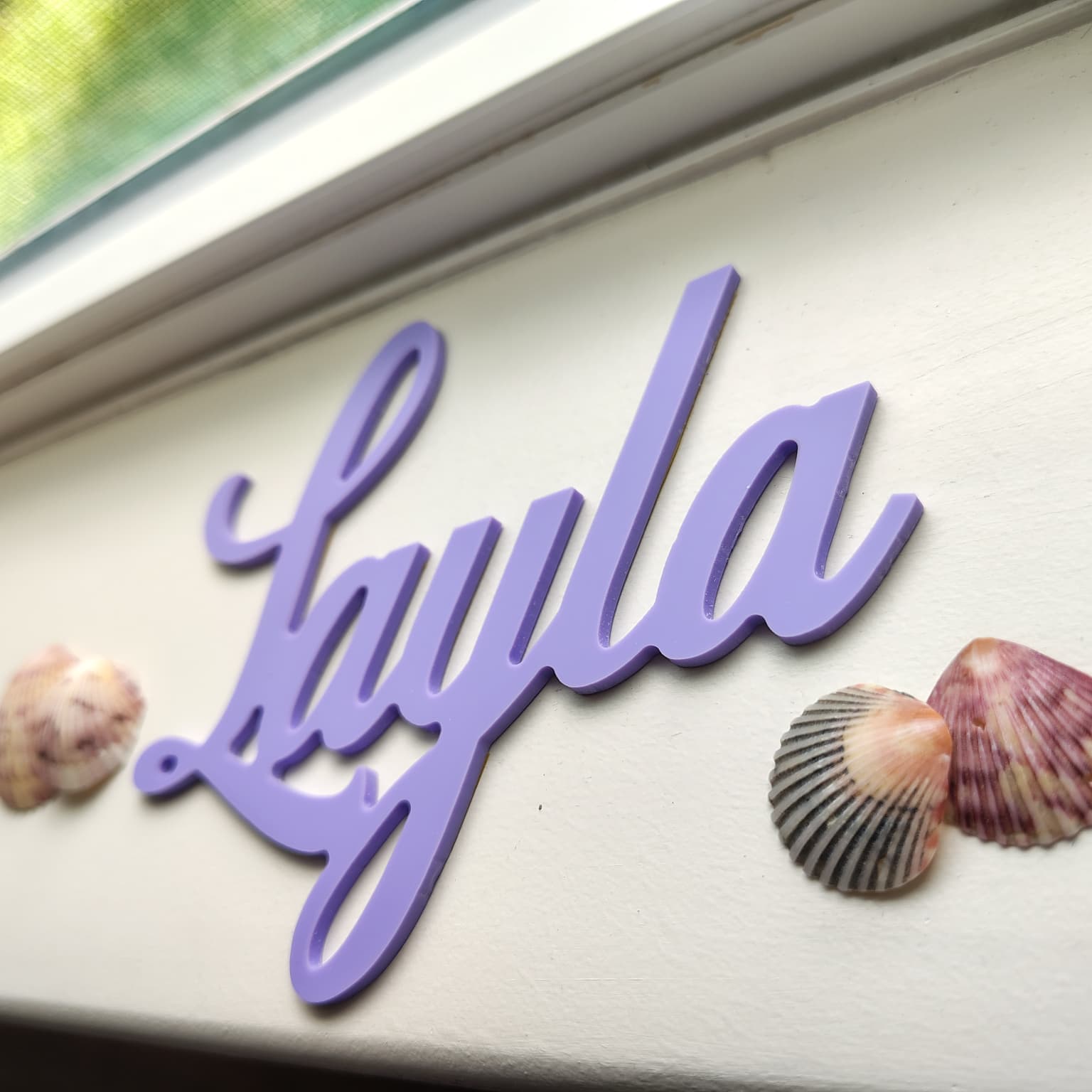 Personalized acrylic name sign. Perfect for bedroom doors, nursery walls, or birthday decorations, each sign is lightweight, durable, and easy to install. Smooth finish and delicate cursive font that makes any name look elegant and special